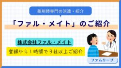 転職サービスを探す ファル・メイトは幅広い年齢層の薬剤師に寄り添う転職サイト!年収アップも叶う? ファル・メイトは、薬剤師の転職を専門にサポートする転職サイトです。「ファル・メイト」という名前は、"ファーマシスト(薬剤師)"と"メイト(仲間)"を組み合わせたもので、薬剤師一人ひとりの転職に寄り添うパートナーでありたいという思いが込められ... 転職サービスを探す